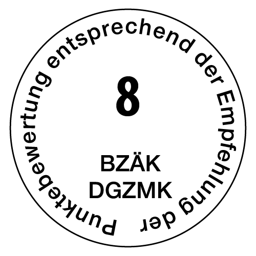 Zertifikat mit 8 Fortbildungspunkten nach BZÄK/DGZMK Richtlinien.